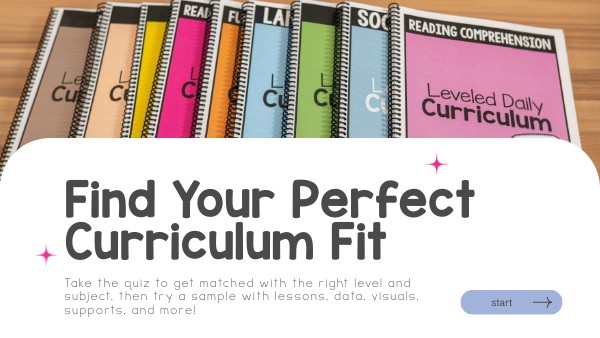 Take the quiz to get matched with the right level and subject, then try a sample with lessons, data, visuals, supports, and more!